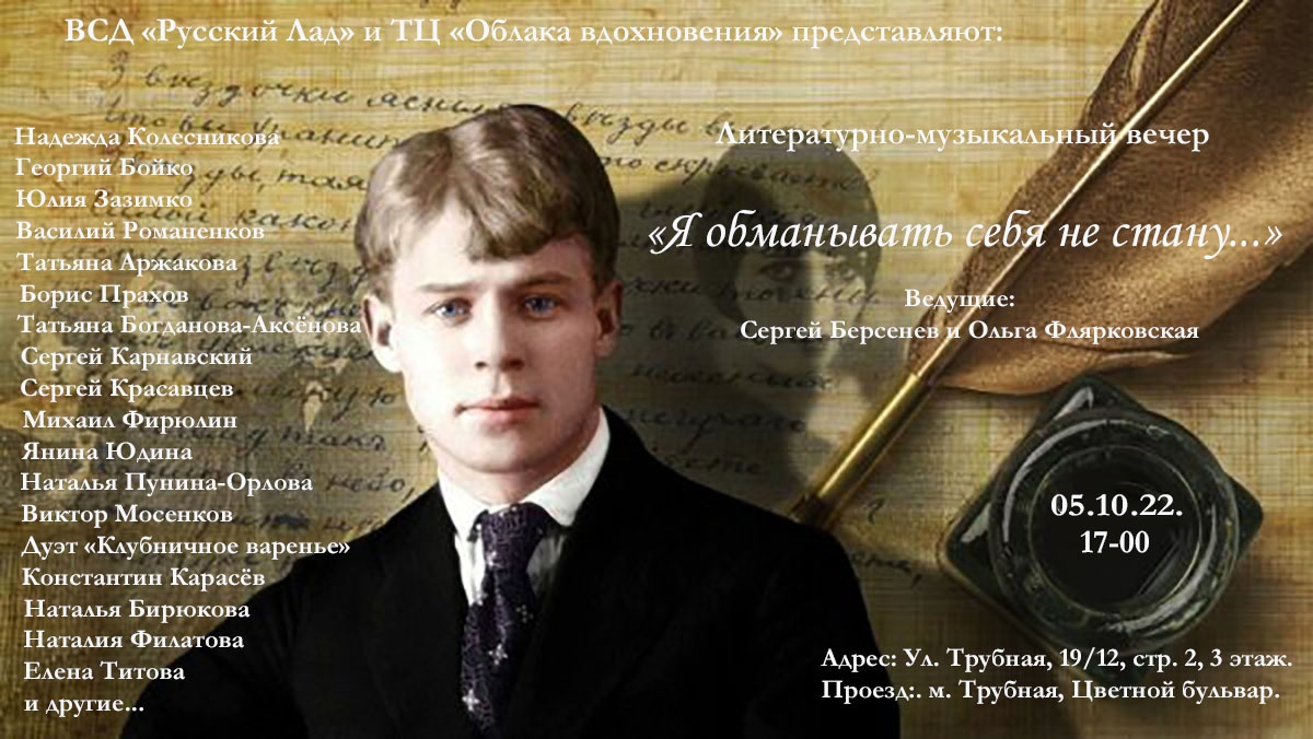 Литературно-музыкальный вечер "Я обманывать себя не стану..." Ведущий Сергей Берсенев.